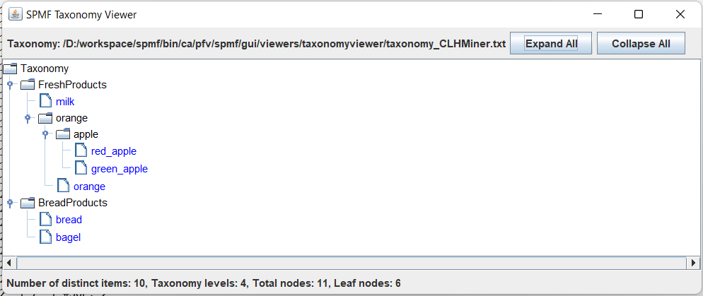 - A tool (TaxonomyViewer) (screenshot) to visualize a taxonomy file as used by algorithms such as CLH-Miner.