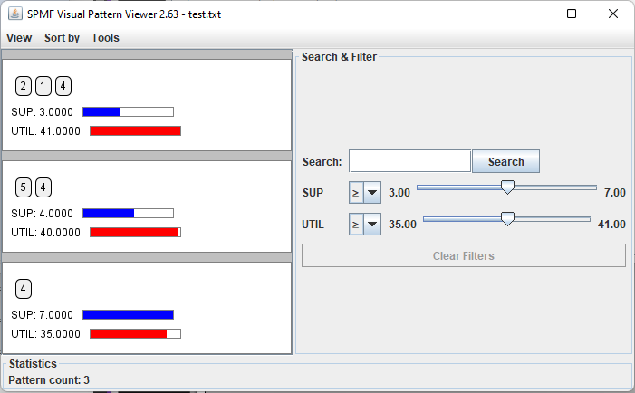 This page explains how to visualize the skyline frequent high utility itemsets found by an algorithm using the Visual Pattern Viewer.